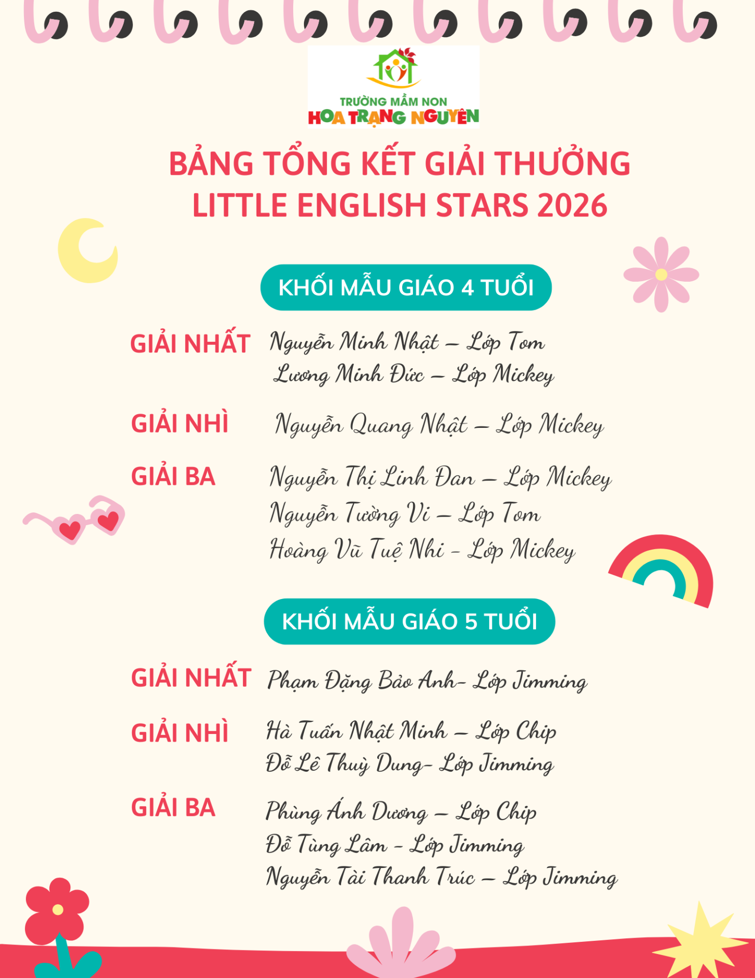 Xin chúc mừng các bạn nhỏ đã đạt giải trong chương trình: