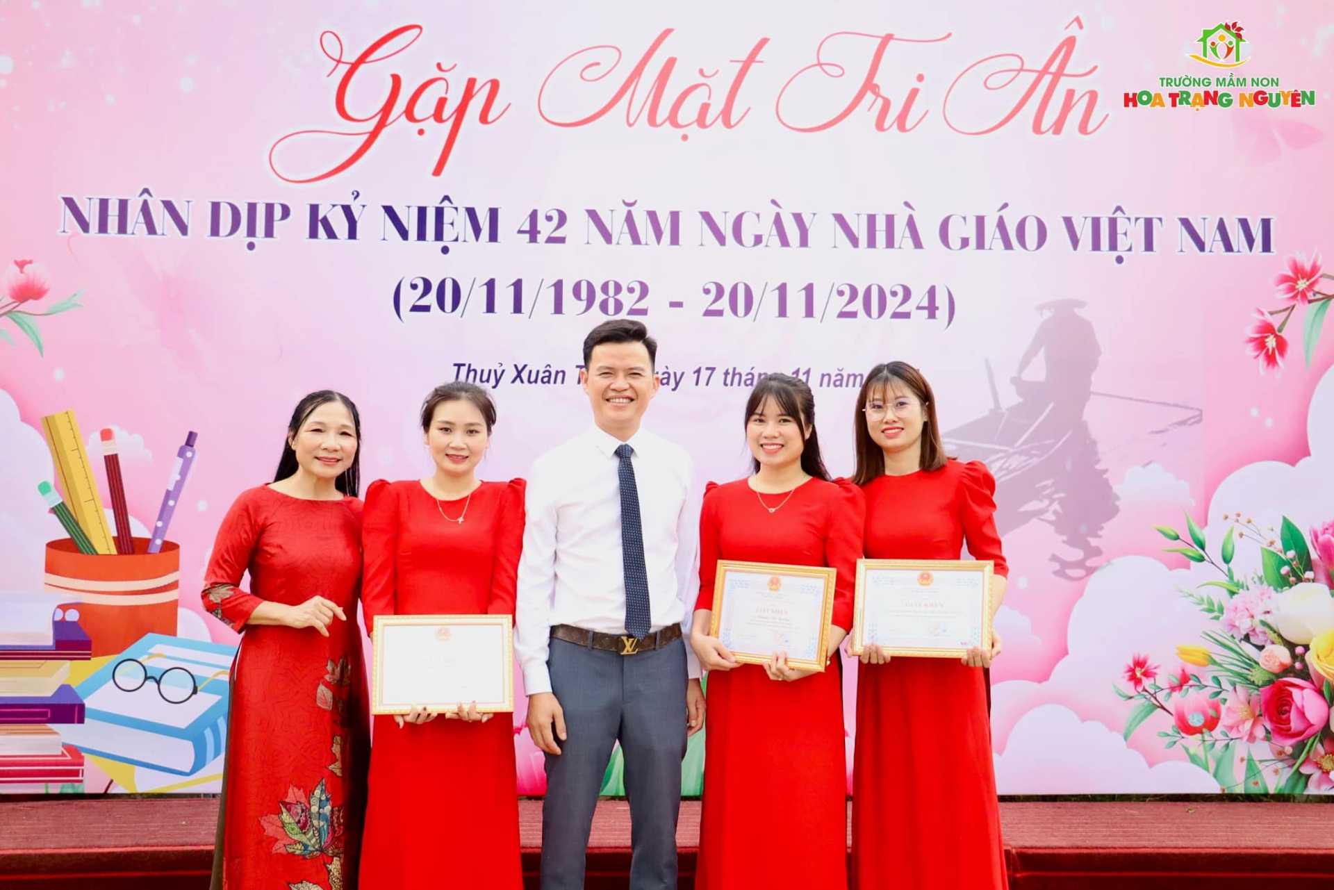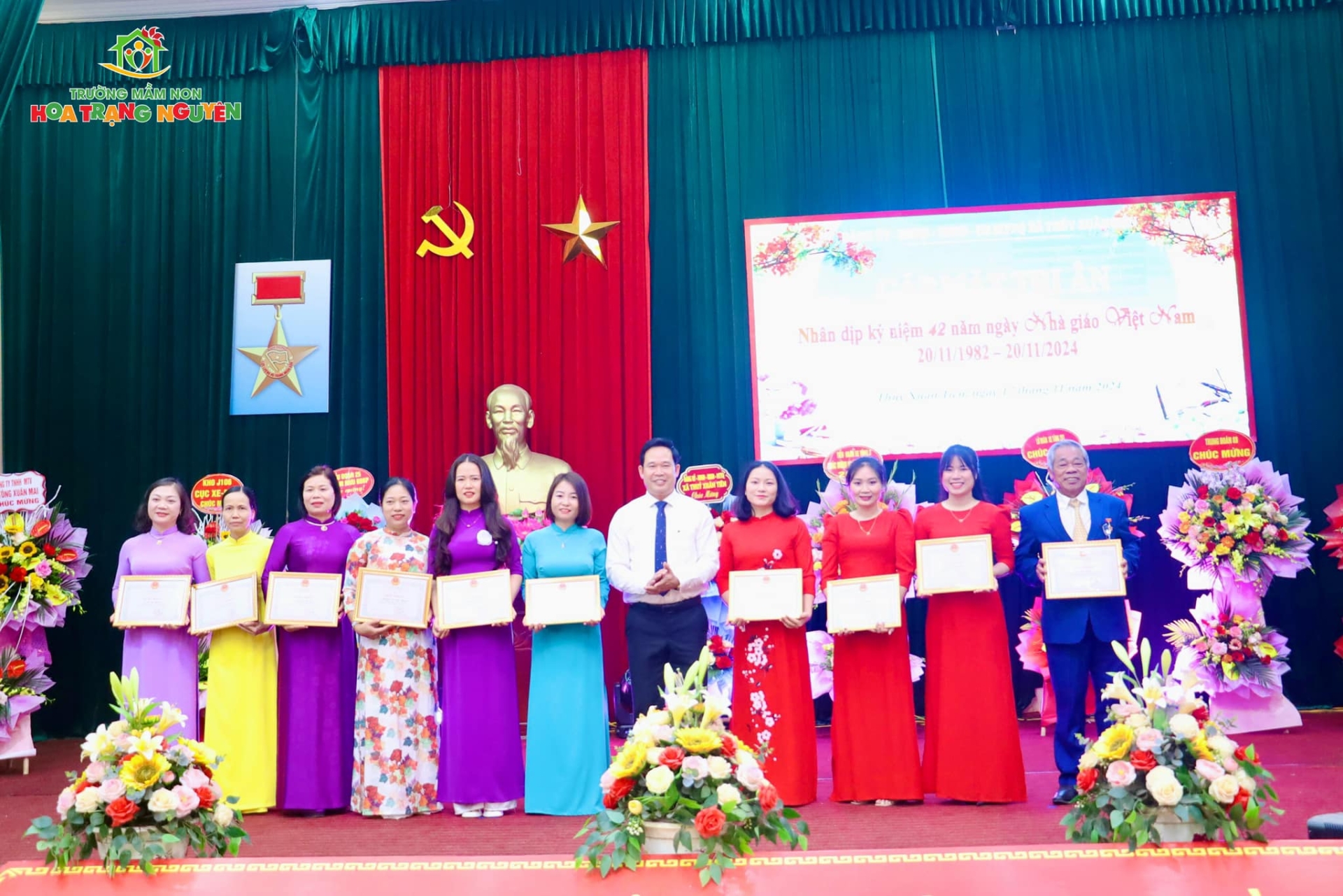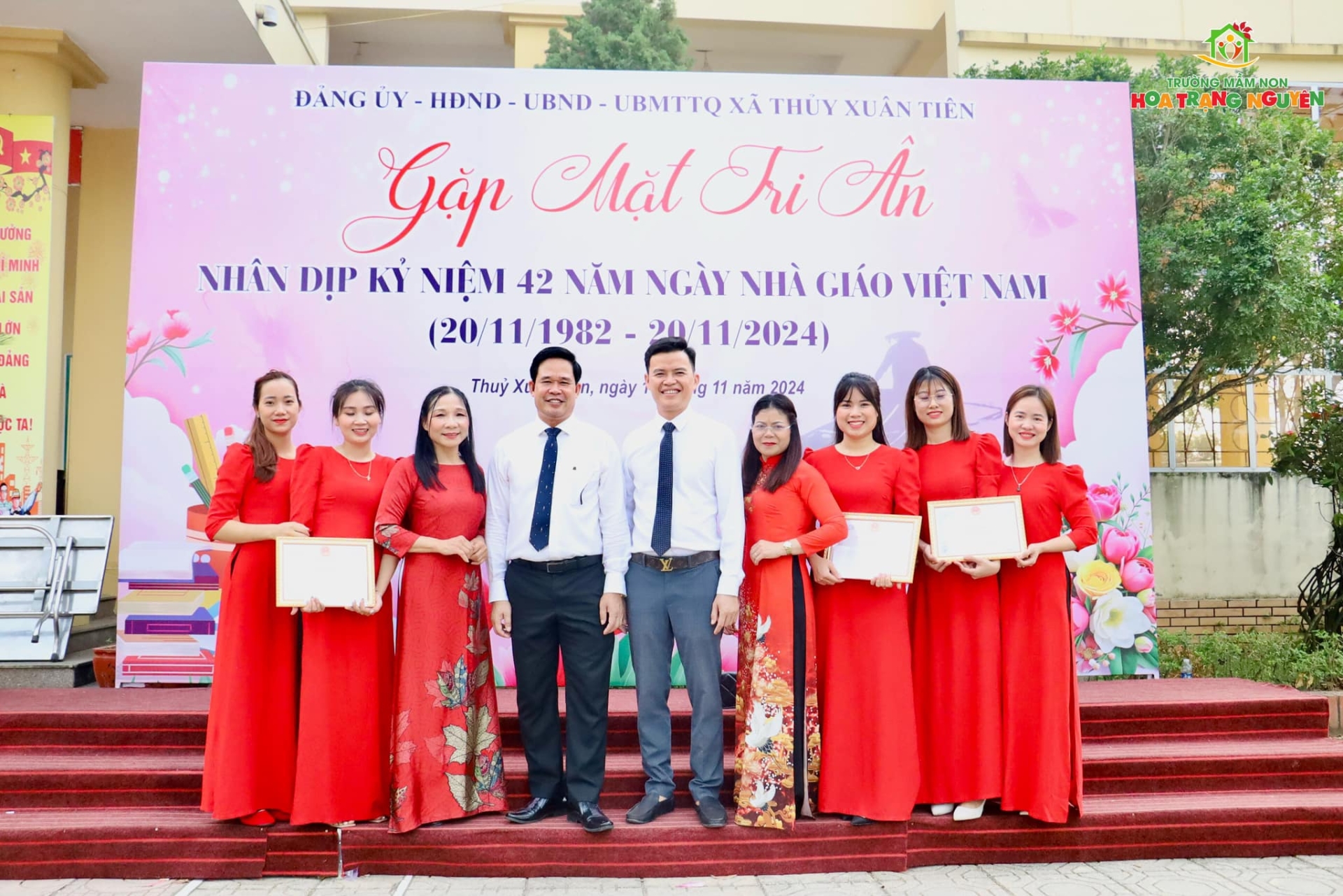 Vinh dự đối với nhà trường, trong dịp này, tập thể trường Mầm non Hoa Trạng Nguyên và 2 cá nhân gồm cô: Nguyễn Thị Hường và Hoàng Như Quỳnh đã được UBND xã trao tặng Giấy khen, ghi nhận thành tích xuất sắc trong công tác giáo dục năm học 2024 - 2025. Đặc biệt, nhà trường vinh dự có cô Trần Thị My đã được UBND huyện Chương Mỹ biểu dương nhà giáo mẫu mực tiêu biểu.